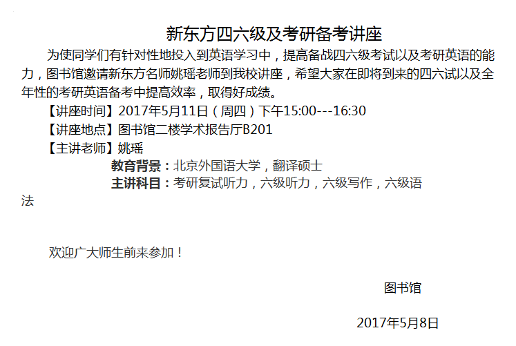 新东方四六级及考研备考讲座