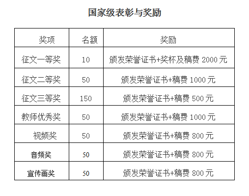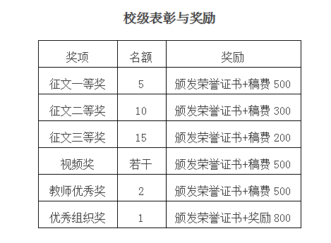 五、活动表彰与奖励此次活动分为校级表彰及国家级表彰。具体如下: