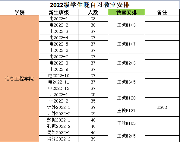 晚自习教室学校已统一安排(如下图)。