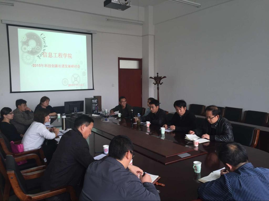 十大信誉官网于2015年11月4日下午,在F203会议室召开科技创新社团发展研讨会,李宝山书记,江杰教授、段志峰副书记以及各社团负责人、学工办全体老师参加会议。科技创新社团为大学生提供了实践锻炼的平台,科技创新社团的发展也是学院学团工作的重点之一。