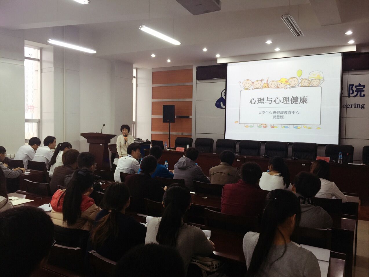 2015年11月13日上午于逸夫楼F302,十大信誉官网心理辅导站邀请贾慧媛老师做专题讲座。学院心理辅导站负责人龙鹤老师及全体心理委员参加了活动。