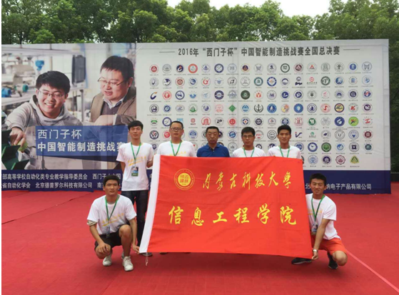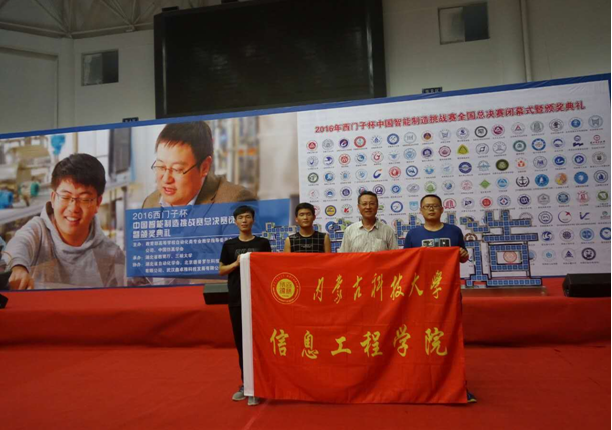 8月17—21日,由教育部高等学校自动化类专业教学指导委员会、西门子(中国)有限公司和中国仿真学会联合主办的第10届2016年 “西门子杯”中国智能制造挑战赛全国总决赛在湖北省三峡大学举行。我校由自动化专业张晓利老师指导的自卓越13学生王强红、李鑫、伊顺参加了运动控制赛项,田海老师指导的自卓越13学生戚海龙、张健、黄好林参加了逻辑控制赛项,两队在分赛区比赛中力压群雄双双进入全国总决赛,并均取得全国总决赛二等奖的好成绩,突显自动化卓越班培养成效。