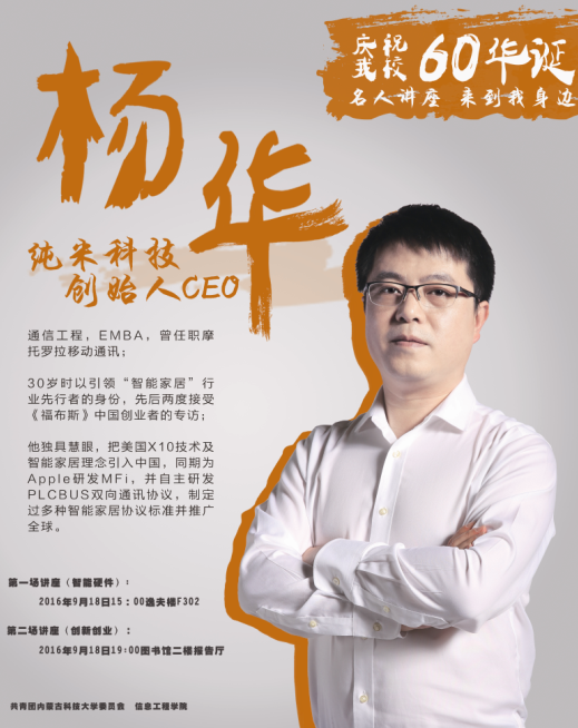 庆祝建校60周年,十大信誉官网邀请杨华董事长于9月18日下午15:00和19:00,分别于逸夫楼d302和图书馆报告厅,为热爱科技创新的同学们进行了两场讲座。每场讲座都持续两个半小时,讲座内容围绕“智能硬件”和“创新创业”展开,通过理论讲述与实践经验分享,为同学们带来一场创新创业路上的精彩盛宴。杨华董事长的精彩讲座得到同学们的热烈欢迎,会场不断传出阵阵掌声。通过互动环节同学们的提问,杨董事长表示,参加讲座的同学们提出的问题有深度,对智能硬件领域有很强的求知欲,希望你们能认真学习,不断钻研,在创新创业这条路上实现自己的梦想!