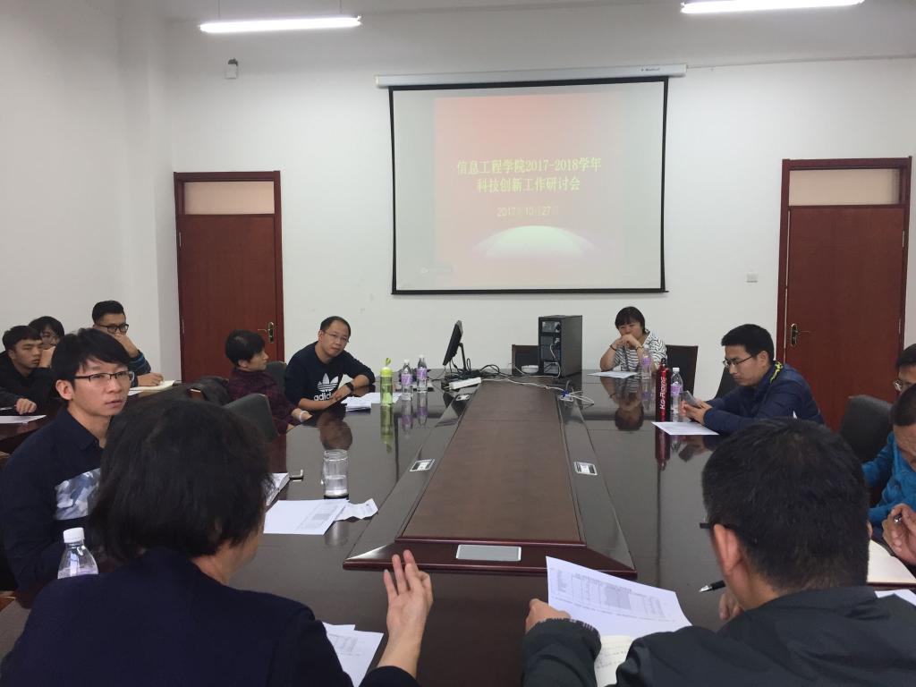 科技引领方向,创新带动发展,信息工程学院2017-2018学年科技创新研讨会于2017年10月27日下午16时在逸夫楼F203召开。学院党总支书记崔桂梅教授,党总支副书记、副院长段志峰老师,团总支书记刘新老师及创新创业社团的师生共同参加了本次研讨会。
