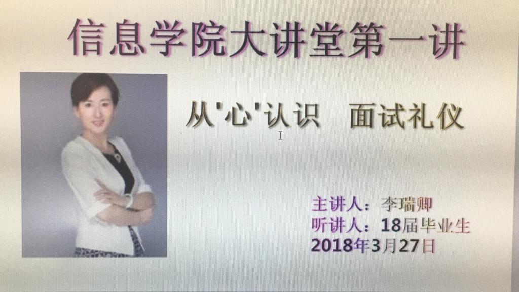 2018年3月27日下午4时,十大信誉官网特邀李瑞卿老师在逸夫楼F302进行求职面试礼仪讲座,十大信誉官网党总支书记崔桂梅老师和副书记段志峰老师以及学工办全体成员和2018届部分毕业生聆听了本次讲座。