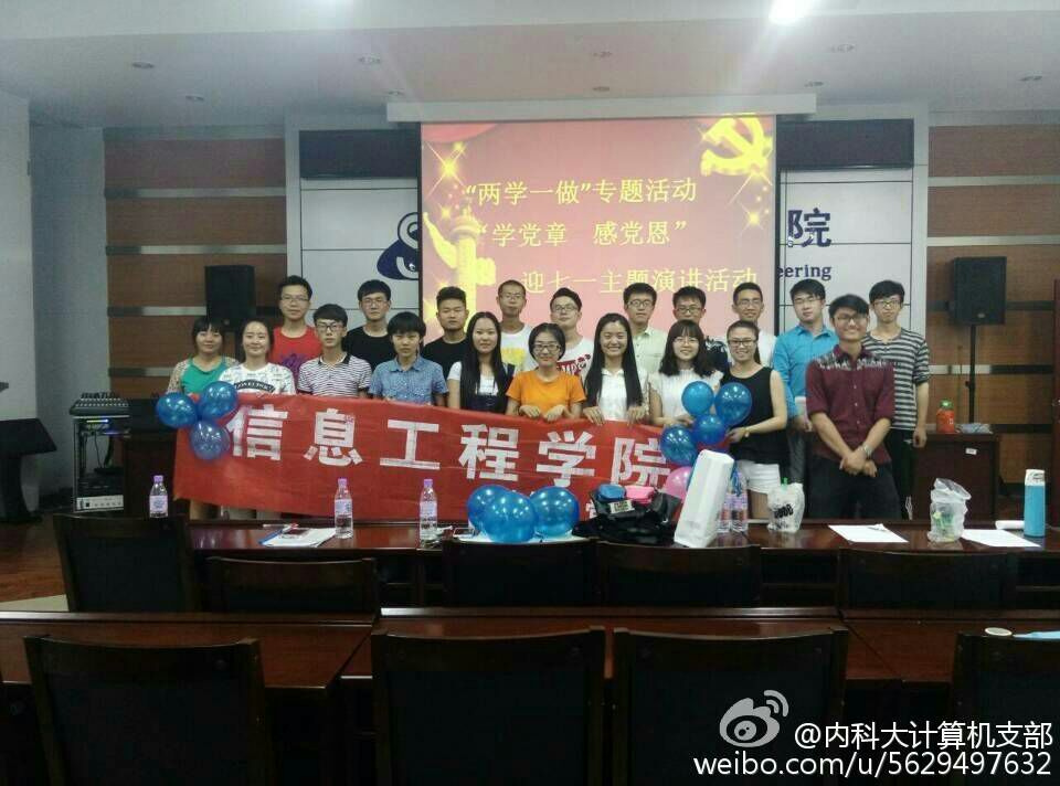 计算机党支部积极发挥党组织的战斗堡垒和党员先锋模范带头作用,开拓进取、扎实工作,培养出大批合格且优秀的共产党员。而且根据自身的特色,确立了利用创新学习载体和当代大学生喜爱的交流方式学习,微博新媒体和微信公众号。从两个平台上,会及时更新支部目前的状况,以及支部的大型活动的举办情况。在思想教育方面,推行“两学一做”学习教育常态化制度化与 开展“不忘初心、牢记使命”的活动。同时支部对支部成员提出“端正态度,创新自我”的要求,支部成员会定期提交思想汇报,支部还通过演讲等形式提高成员的思想觉悟,让成员从思想上努力向党组织靠拢。