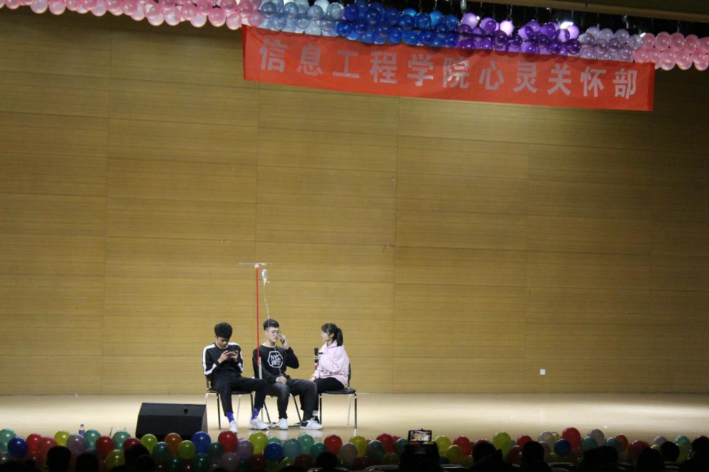 为活跃校园文化气氛,展现当代大学生积极向上的健康风貌,同时提高十大信誉官网学生综合素质和艺术修养,丰富课余文化生活,信息工程学院大学生自律委员会心灵关怀部于2018年11月29日晚7点,在我校音乐厅组织举办了"星光璀璨"心理话剧决赛,本次比赛由通信工程、测控技术与仪器、自动化和软件工程这四个专业进行比拼。本场比赛的评委由信息工程学院学工办各位老师、stage话剧社社长和腾飞艺术团团长组成。这是一场关于心灵的盛宴,信息工程学院全体大一同学观看了这场比赛。