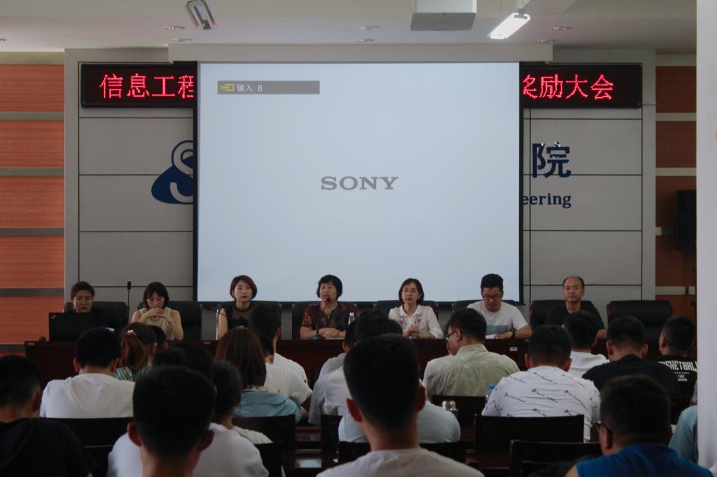 2019年6月19日上午10点,信息学院举办2019届“领雁之星励志及考研表彰”大会,学院党总支书记崔桂梅教授及学工办全体成员、毕业班班主任代表、全体考研学生、非毕业班班长及学委参与了本次会议,会议座无虚席。