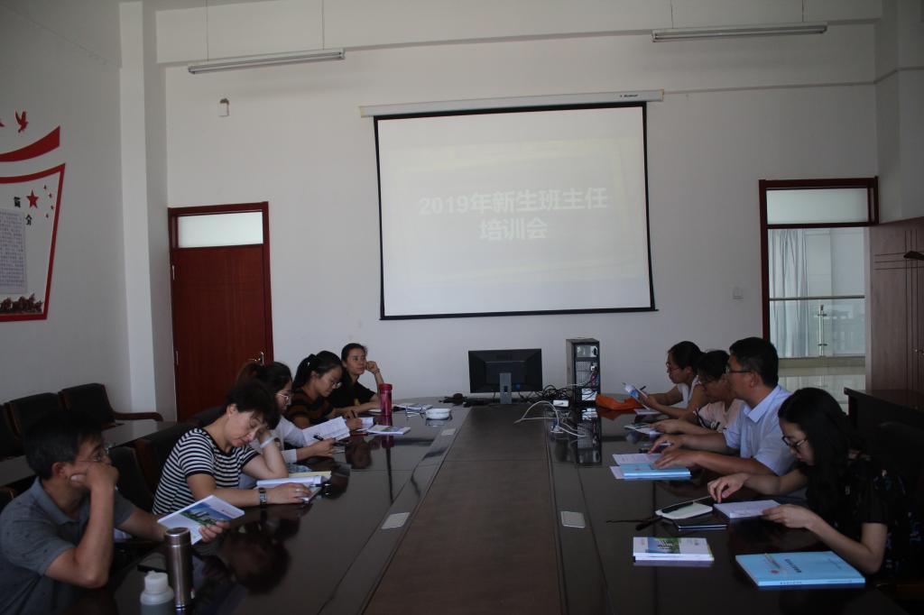 2019年7月1日下午,十大信誉官网在逸夫楼F203召开了2019级新生班主任培训会。本次会议由段书记主讲,多丽老师记录,参会人员为12位新生班主任。