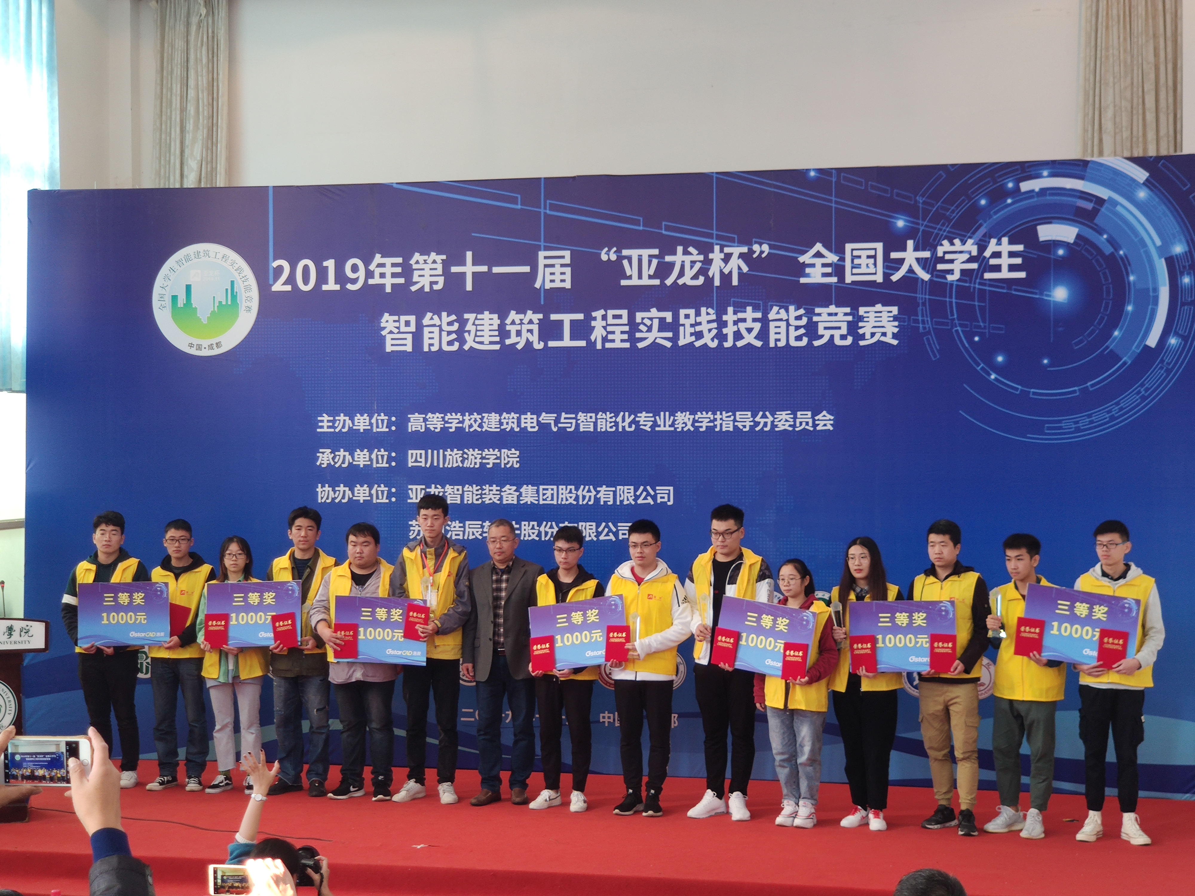 2019年11月1日至3日,由高等学校建筑电气与智能化学科专业指导委员会主办的第十一届“亚龙”杯全国大学生智能建筑工程实践技能竞赛在四川旅游学院举行,来自包括我校、安徽建筑大学、同济大学、北京联合大学、广州大学、西安建筑科技大学等36所高校的代表队参加了本次比赛。