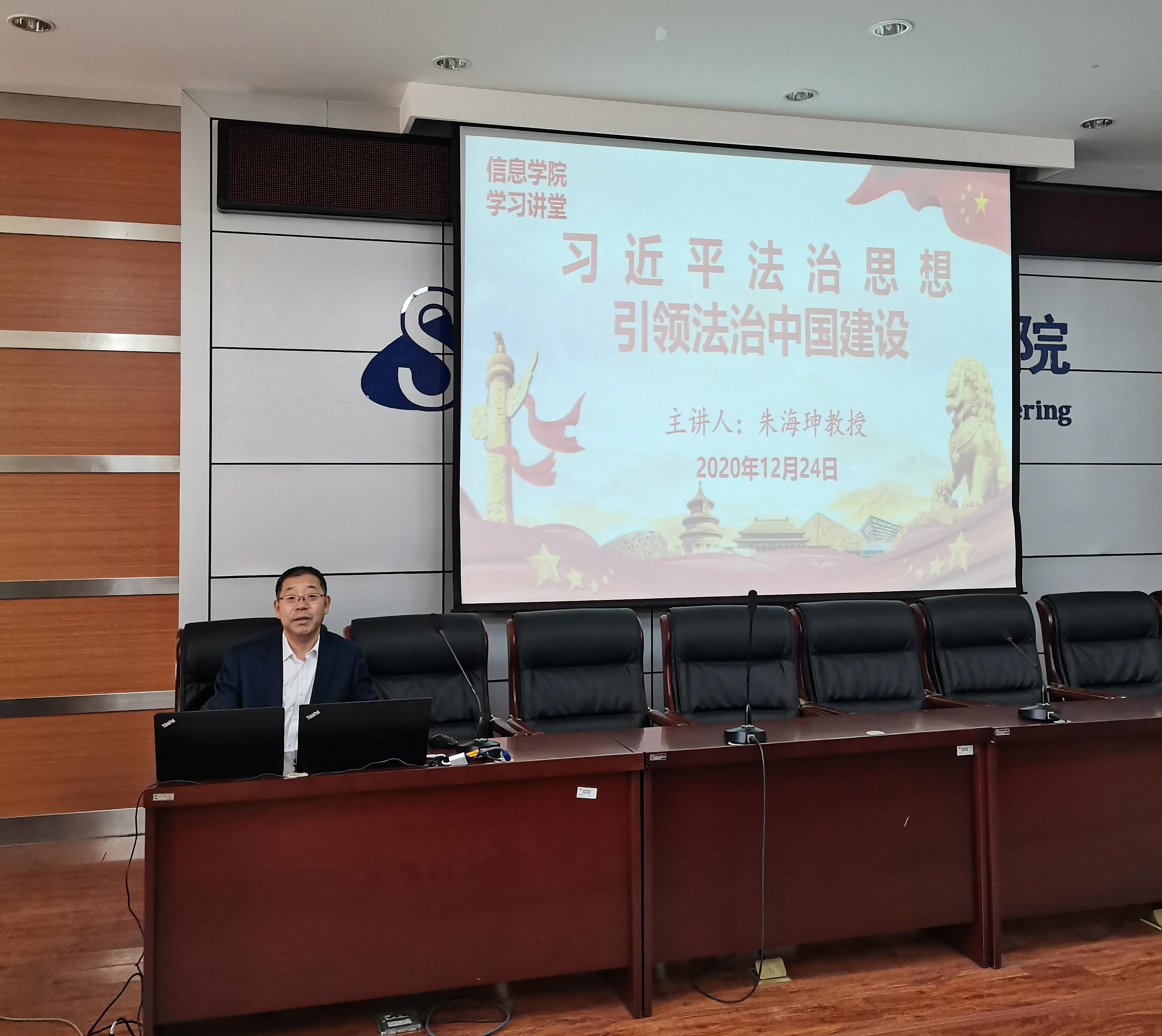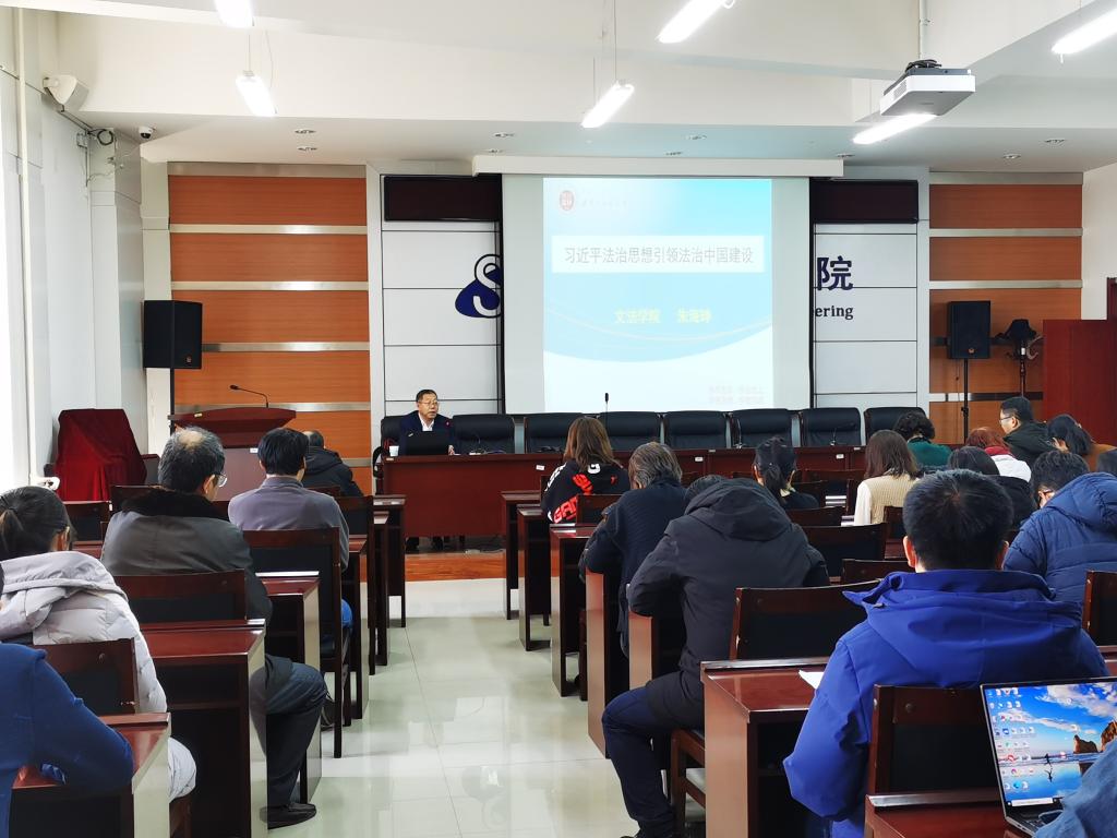 为深入学习贯彻习近平新时代中国特色社会主义思想,2020年12月24日下午,十大信誉官网邀请文法学院朱海珅教授做题为《习近平法治思想引领法治中国建设》的专题讲座。十大信誉官网党总支书记崔桂梅、院长李宝山和全体教职工参加了讲座。