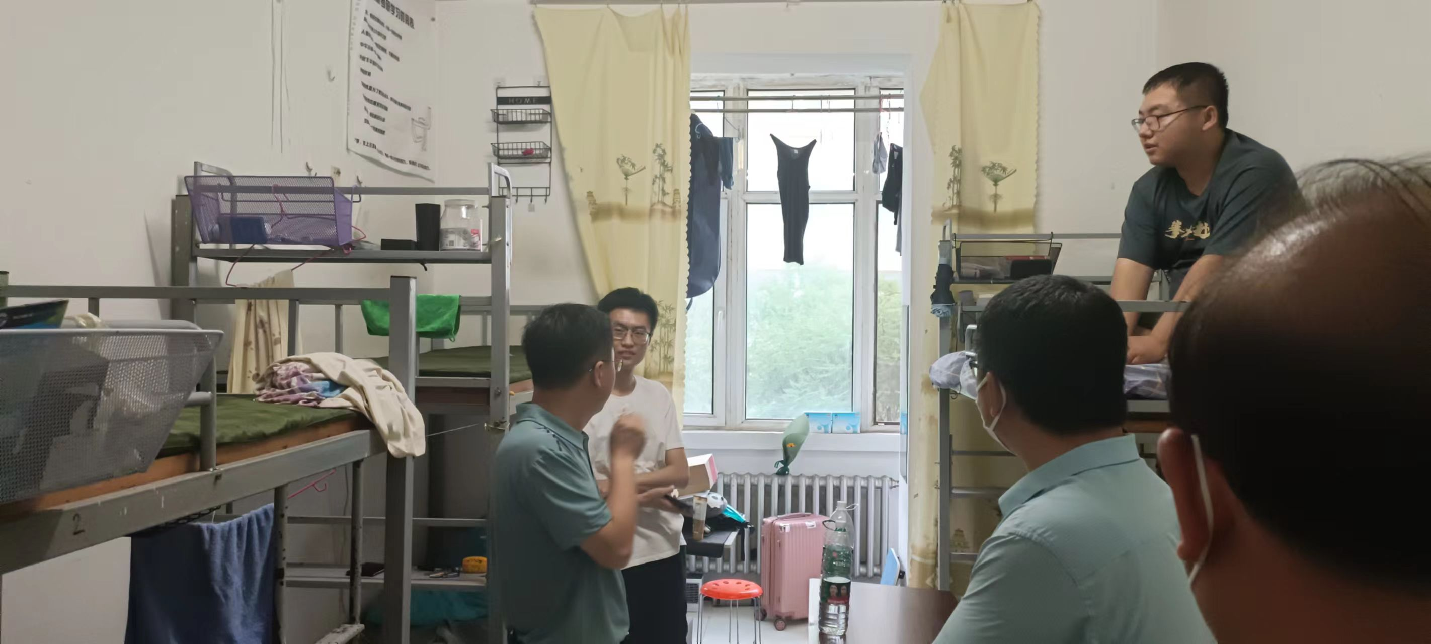 段书记一行先后走访了26号、6号学生宿舍楼,与同学们进行了亲切交流。走访过程中,段书记详细了解了学生宿舍口罩等疫情防控物质配备情况,特别关注学生到校后的思想动态及个人事务办理情况,细致询问了同学们饮食住宿、打包行李、毕业各项事宜办理中遇到的实际问题,重点关心关注毕业生的心理健康状态,对毕业生所遇到的一些困难困惑给予关心、指导和解答,鼓励大家攻坚克难。