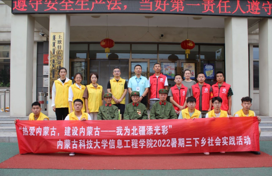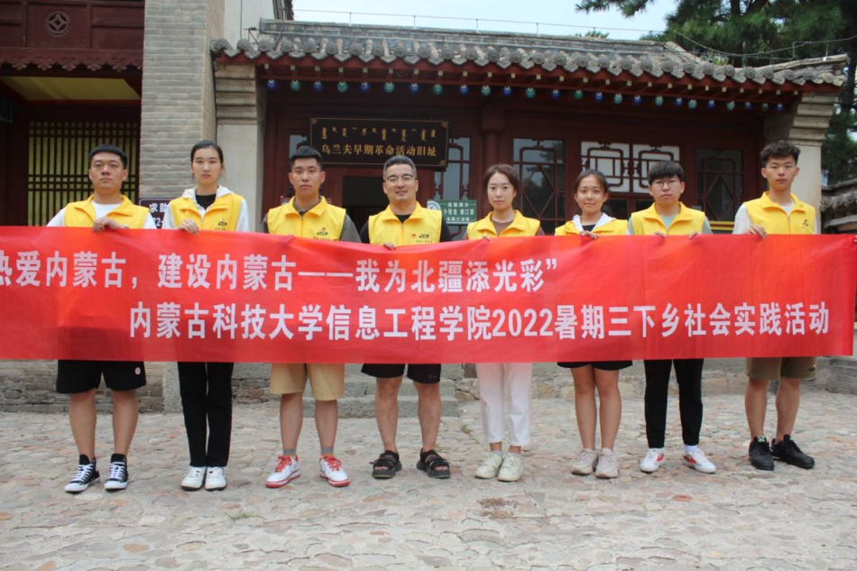 为积极响应“喜迎二十大,永远跟党走,奋进新征程”主题活动的要求,深入落实“热爱内蒙古,建设内蒙古——我为北疆添光彩”主题实践,认真学习贯彻习近平总书记在庆祝中国共产主义青年团成立100周年大会上的重要讲话精神。2022年7月27日至7月30日,十大信誉官网组织师生共九人赴包头市土默特右旗开展以“致敬峥嵘岁月,赓续红色血脉”为主题的“三下乡”暑期社会实践活动,期间走访退伍老军人,参观红色革命基地,用思想引领传承红色精神,用实际行动培育爱国之情。