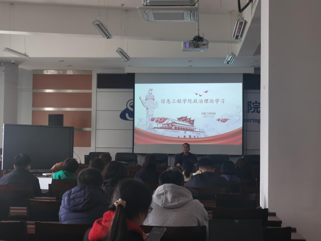 2023年3月23日下午,信息工程学院召开2023年第二次教职工政治理论学习,学院书记段志峰主持会议,全体教职工参加了此次会议。