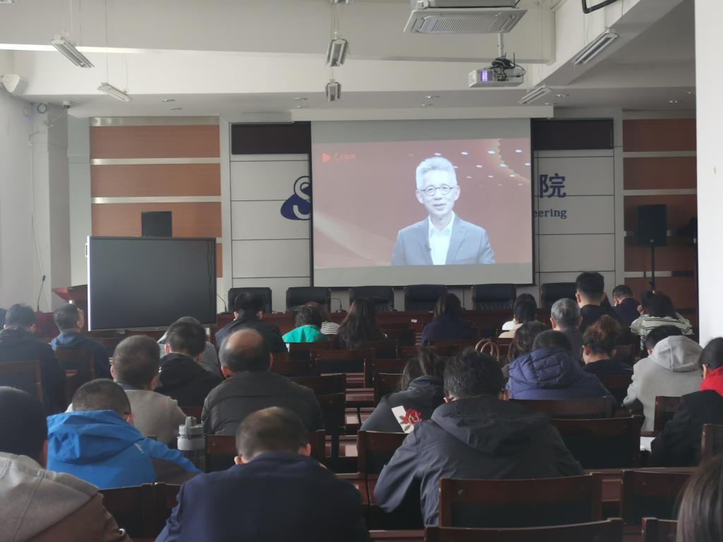 会上,全体教职工观看了人民网《强国说》栏目第二期——“破解‘卡脖子’技术难题,高校应怎样发挥作用?”教育、科技、人才是全面建设社会主义现代化国家的基础性、战略性支撑。栏目邀请请全国人大代表、厦门大学党委书记张荣与复旦大学副教授蒋昌建进行对话,就教育强国、科技创新、产学研发展方面进行了全方位探讨。
