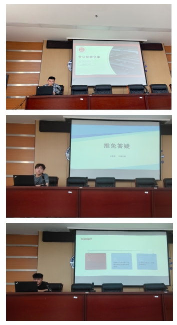 本次分享会邀请2020级考研考公上岸的王大哲、王艳龙、董豪3名同学作为分享嘉宾。分享会上,王大哲同学对公考现状、具体内容、备考计划和备考建议进行了经验分享。他指出“应届毕业生毕业那年是最容易上岸的”。同时,学长也为备考的同学们提供了推荐的备考计划,为同学们的备考提供有益借鉴。最后,他对公考各类题型的备考学习提供了指导性的方法及课程的推荐。王艳龙同学分享社会实践、志愿服务、参加科创比赛、教学技能竞赛备赛的相关经验。他指出,学科竞赛尤为重要,不仅能开拓视野,也能锻炼大家的专业能力。董豪同学分享了考研的经验,他强调在备考过程中应加强专业知识学习、夯实基础、坚持积累,关注择校及调剂方式。在提升学习效率和专业素质的同时,也要正视考研焦虑,通过适当的方式缓解心理压力,放平心态,坚持不懈。在现场提问环节,王大哲、王艳龙、董豪悉心解答了在场同学们提出的各种相关问题,并给出了有针对性的参考建议,提供了非常有价值的参考,帮助大家打破“信息差”,现场反响热烈。