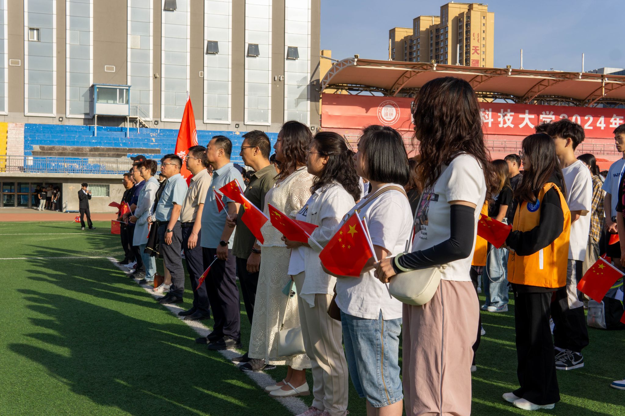 为落实立德树人根本任务,引导学生厚植爱国荣校情怀,牢固树立“我与母校共成长”的主人翁意识,6月17日早7:00,学院在田径场举行“知校、爱校、荣校”主题升旗仪式。学院党政领导、系部老师、专兼职辅导员、班主任等党员教职工,2022级、2023级全体学生,学生党员等840余人参加了活动。