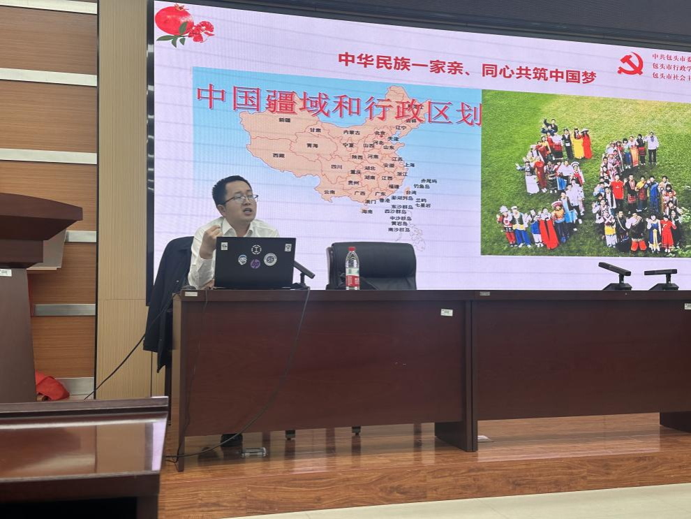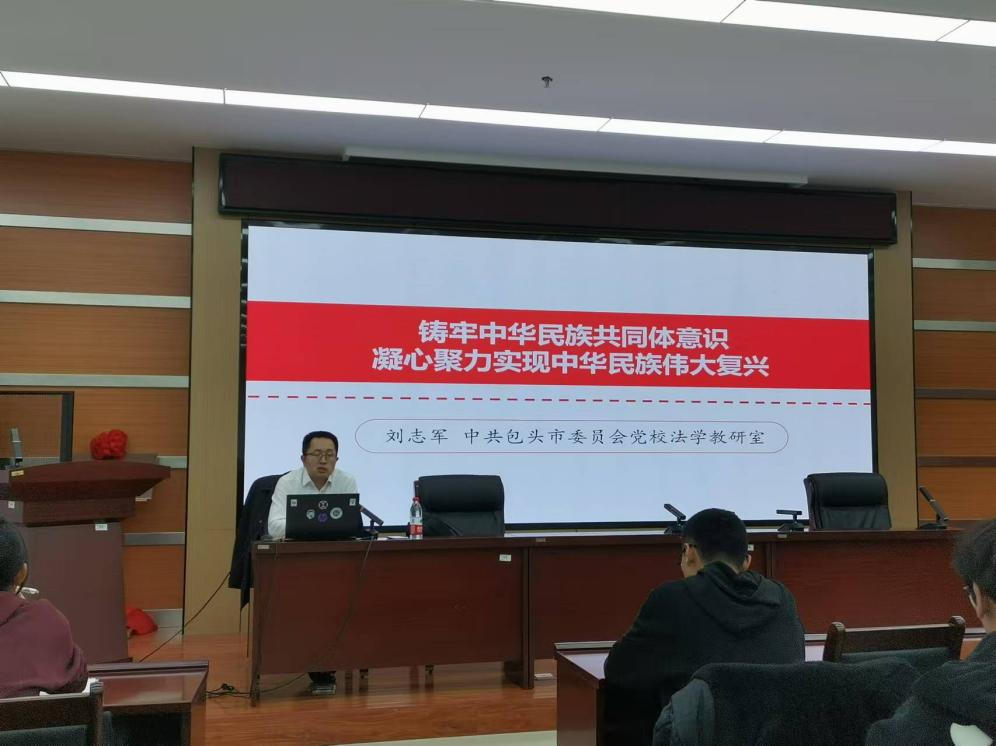 2024年12月5日晚7点,澳门十大信誉好的网站党委在逸夫楼F302举办主题为“铸牢中华民族共同体意识 凝心聚力实现中华民族伟大复兴”的精彩讲座。本次讲座特邀中共包头市委员会党校法学教研室的刘志军教授主讲,党员、入党积极分子以及青马班学员共计100余人参加。
