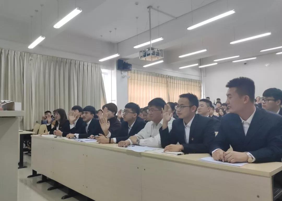 答辩团成员对12名拟发展同志进行提问评审,拟发展同志分别上台接受答辩团成员的问题,并给予回答。在答辩中,他们都表示出要加强自己的思想政治学习并且自身的学习情况也不能落下、在以后的道路上要更加严格的要求自己,成为一名预备党员仅仅是一个新的开始。回答结束后,由电气学生党支部书记郭聪如老师以及答辩团根据其表现,进行举手表决,最终表决通过了王强等12名拟发展对象发展为新一批中共预备党员的决定。