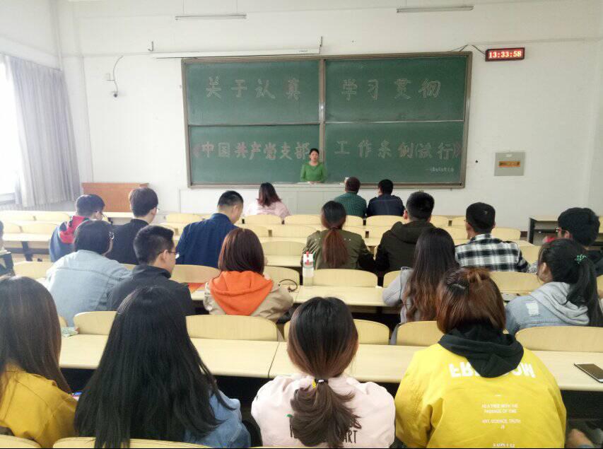 2019年4月11日12:40,计算机学生党支部开展了以“关于认真学习贯彻《中国共产党支部工作条例(试行)》”为主题的党支部组织生活大会。参加此次党课的有计算机党支部全体党员。《中国共产党支部工作条例(试行)》是为了坚持和加强党的全面领导,弘扬“支部建在连上”的光荣传统,落实党要管党、全面从严治党要求,全面提升党支部组织力,强化党支部政治功能,充分发挥党支部战斗堡垒作用,巩固党长期执政的组织基础,根据《中国共产党章程》和有关党内法规制定的条例。大会过程中,党员同志们谈到,党支部是党的基础组织,是党在社会基层组织中的战斗堡垒,是党的全部工作和战斗力的基础,必须贯彻落实新时代党的组织路线,把党支部建设放在更加突出的位置,加强党支部标准化、规范化建设,不断提高党支部建设质量。的确,支部的建设不仅要遵循条例中的原则、明确工作机制设计、确保组织生活的开展,更要把学习宣传、贯彻落实《条例》作为党组织的重要任务。切实把抓好党支部作为党的组织体系建设的基本内容、管党治党的基本任务、检验党建工作成效的基本标准,采取有力措施,推动《条例》落到实处、见到实效。