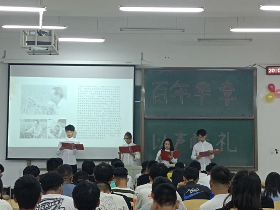 2021年5月30日晚7:40信息工程学院在逸夫楼G204开展“百年华章,以声献礼”党团共建活动。活动以朗诵的形式举办,紧紧围绕庆祝建党100周年,充分结合党史学习教育,引导广大学生全面了解建党百年的光辉历程、伟大成就和宝贵经验,传承奋斗精神,凝聚时代力量。