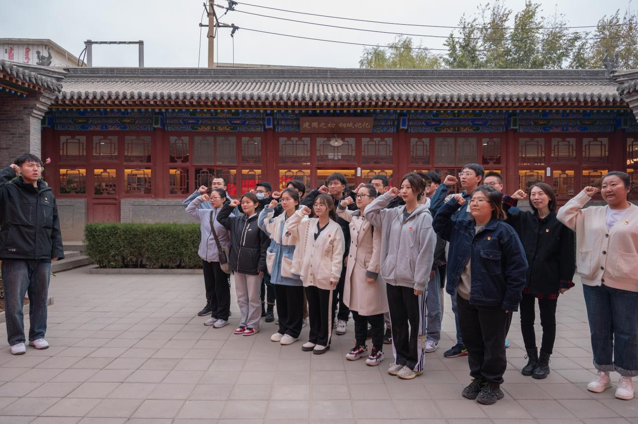 在中共市委旧址的院落中,全体党员同志进行了重温入党誓词活动。面向鲜红的中国共产党党旗,全体党员同志举起右拳,庄重地重温入党誓词。入党誓词回响百年,红色血脉赓续绵延,初心使命历久弥坚。时常重温入党誓词,凝聚着党员们对党的忠诚和对共产主义事业的坚定信仰,在历史的长河中闪耀着永恒的光芒。