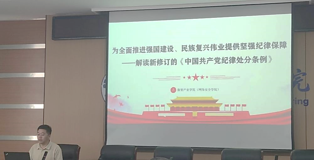 王静宇书记从《条例》修订的历史沿革、重要意义和主要内容三方面解读了《中国共产党纪律处分条例》,并结合日常工作实际强调,在全党开展党纪学习教育,是加强党的纪律建设、推动全面从严治党向纵深发展的重要举措,也是推动学校、学院事业高质量发展的现实要求。我们要持续推动党纪学习教育走深走实,进一步教育引导全院党员、干部真正把纪律规矩转化为政治自觉、思想自觉、行动自觉。要深刻把握党纪要求,自觉把自己摆进去、把职责摆进去、把工作摆进去,结合高校特点、联系本职工作,同做好学院中心工作紧密结合起来,为学院发展提供坚强纪律保障和强大精神动力。
