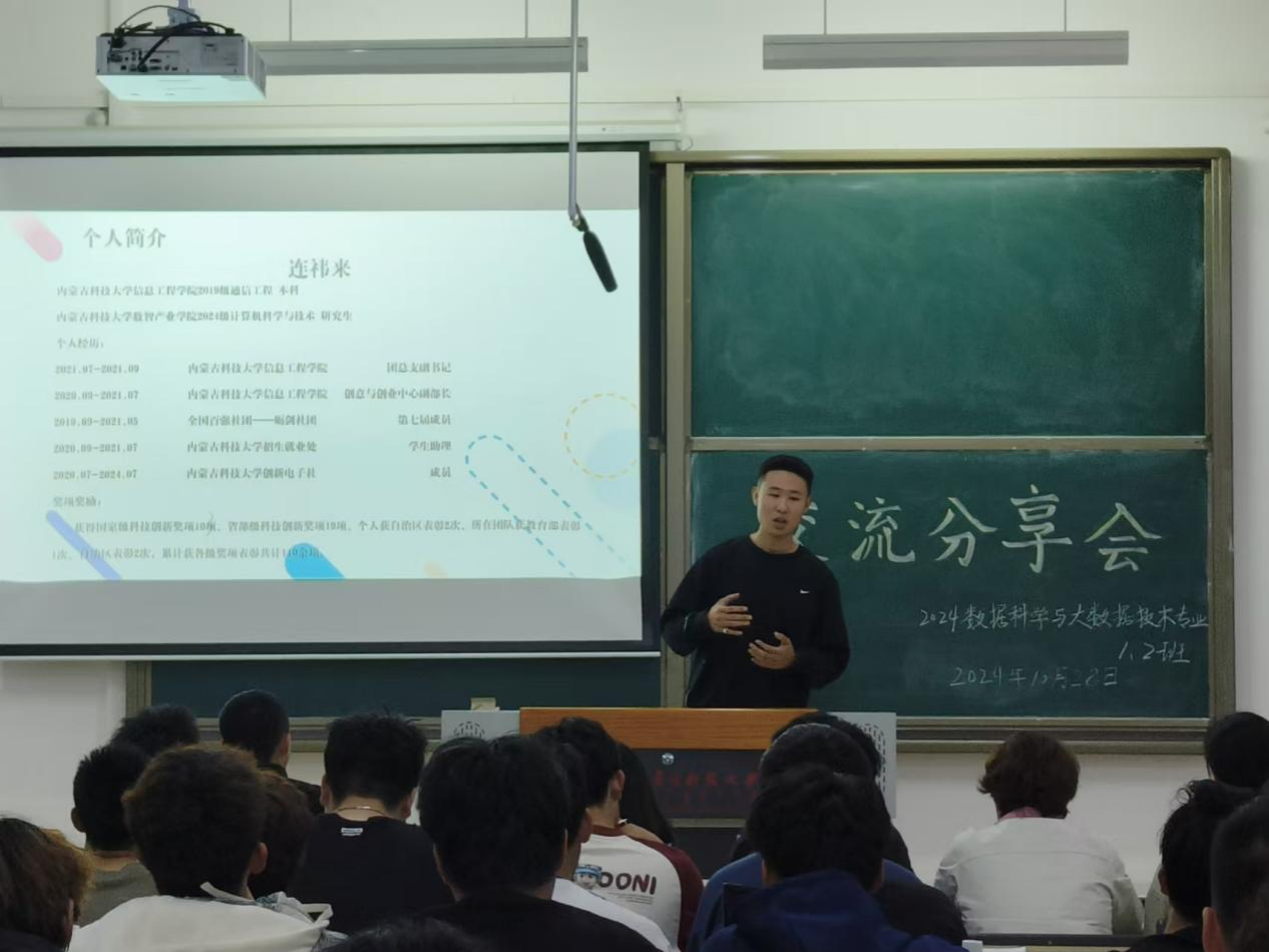 宣讲中,连祎来从大学生活、学习规划、参加社会实践、科技创新入门与参赛、学生工作、学生干部经验、考研最新政策解读、考研时间解析、考研专业/院校选择、复习备考规划等多个维度进行了详细讲解。他现场例举优秀学子现在发展例子与学生工作的优势。崔凡冰以“为什么要考研?”“考研需要具备哪些能力?”“考研能给我们带来什么?”等问题,与在场学生们进行互动问答。范英豪详细介绍了学硕与专硕的区别,他从生涯规划的角度出发,为不同专业的同学推荐了合适的职业类型,帮助同学们明确了考研目标及备考方法。周佳琪围绕考研的专业方向选择、目标院校筛选、复习计划制定等核心议题进行细致剖析。他们以自己的经验告知大家考研是一场持久战,需要同学们有着坚定的信念和合理的规划,提前准备科学规划。引导大家合理规划备考时间,提高学习效率,为自己的未来发展打下坚实的基础。