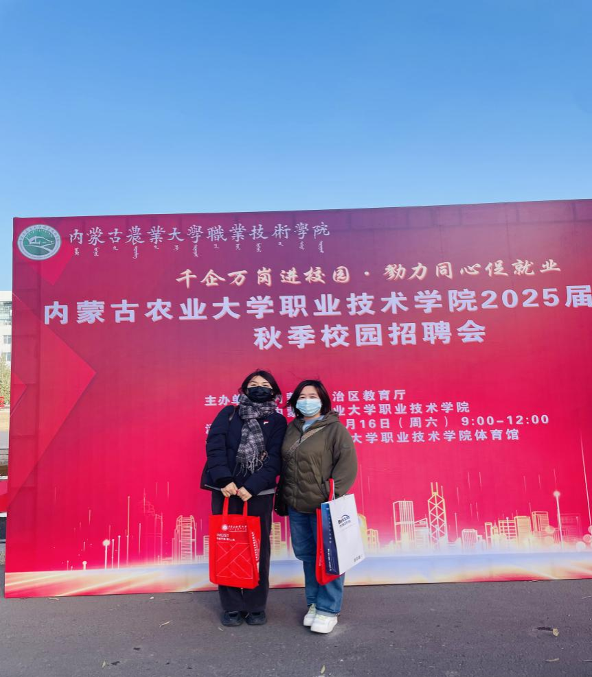 为做好毕业生就业工作,促进毕业生充分高质量就业,学院深入落实“引进来”和“走出去”,积极开拓就业市场,与用人单位进行高效的人才对接服务,大力开展毕业生充分高质量就业攻坚行动,11月16日上午,十大信誉官网负责就业的老师李惠娟、王来前往内蒙古农业大学职业技术学院参加2025届秋季校园招聘会,为学院毕业生搭建校企就业平台。