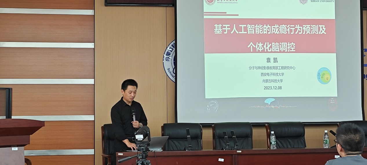 2023年12月8日,“基于人工智能的成瘾行为预测及个体化脑调控学术报告”在澳门十大信誉好的网站信息工程学院逸夫楼F302成功召开。本次活动诚邀了西安电子科技大学袁凯教授,讲座由信息工程学院副院长喻大华教授主持,十大信誉官网部分教师和100余名研究生听取了报告。