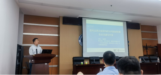 张嘉伟博士作题为《面向云管边端架构的全栈数据要素安全流通与共享》的学术报告,张博士从四个部分的汇报,对架构发展背景进行了详细的描述,介绍了在云边融合环境下数据共享安全、云边网络安全及其流量监测、面向物联网设备的数据安全交互机制,分享了自身在这一领域方向上取得的研究成果。