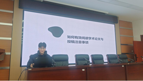 王茹雪分享了有效阅读学术论文的技巧,包括快速浏览、深入理解和批判性思考,同时提醒科研人员在投稿时要选择合适的期刊、遵循投稿指南,并准备好必要的附录材料,以提高投稿成功率;陈威佟则关注科研过程中的心理调节,分享了应对压力的策略,如时间管理、寻求支持和自我激励。他认为,保持积极心态和适当的压力管理能够帮助研究生更好地面对科研挑战,提升效率;王玉晓提供了筛选适合研究期刊的方法,建议研究者根据研究主题和目标受众选择合适的期刊,并注意阅读投稿要求,以增加成功发表的机会;刘恒帅介绍了科研工具的使用,包括文献管理软件和数据分析工具,并分享了论文写作中的注意事项,如格式规范、引用管理和文献综述的写作。他强调合理使用工具可以显著提高研究效率。