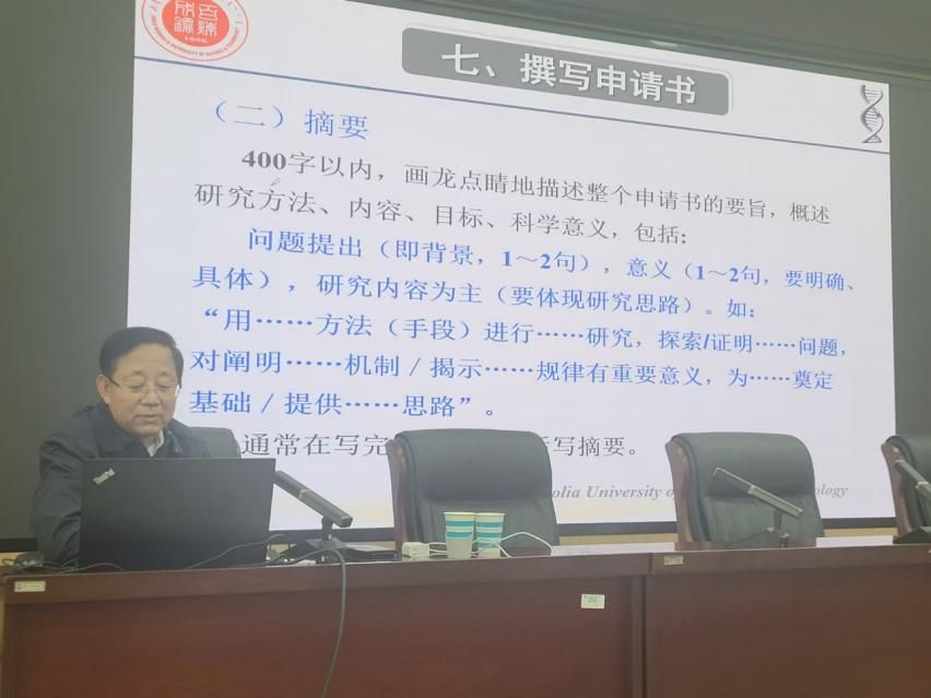 蔡禄教授作了题为“如何撰写一个好的国家自然科学基金申请书”的学术报告。蔡老师围绕国家自然科学基金,结合自身丰富的申报经验,以深入浅出的方式讲解了申报书撰写思路、细节把握等重要内容。在讲座中,蔡教授强调了国家自然科学基金申报书撰写的整体布局、选题的创新性及科学性、摘要撰写的内容及简练性、立项依据的前沿性、参考文献的权威性、研究目标的清晰性、技术路线的逻辑性等关键内容。对申报书撰写的各个环节均进行了针对性建议,并鼓励青年教师积极申报,认真打磨,提高国自然申报书质量。